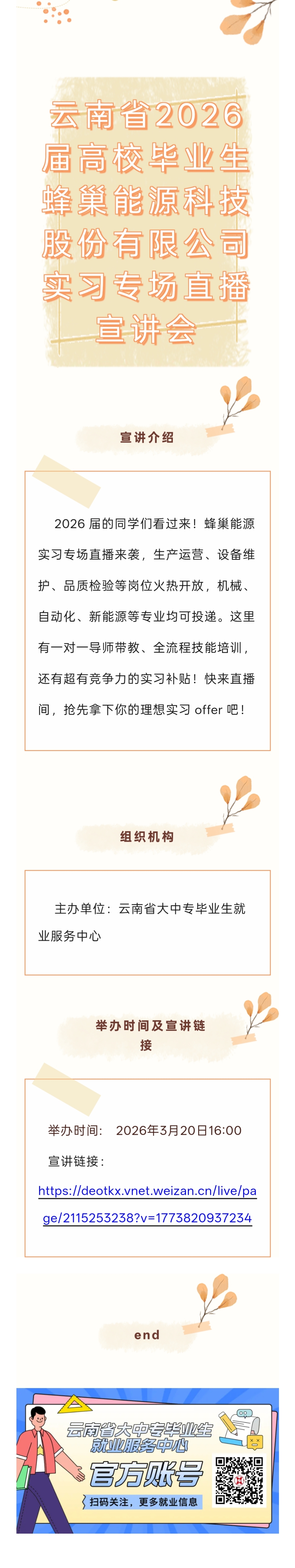 云南省2026届高校毕业生蜂巢能源科技股份有限公司实习专场直播宣讲会