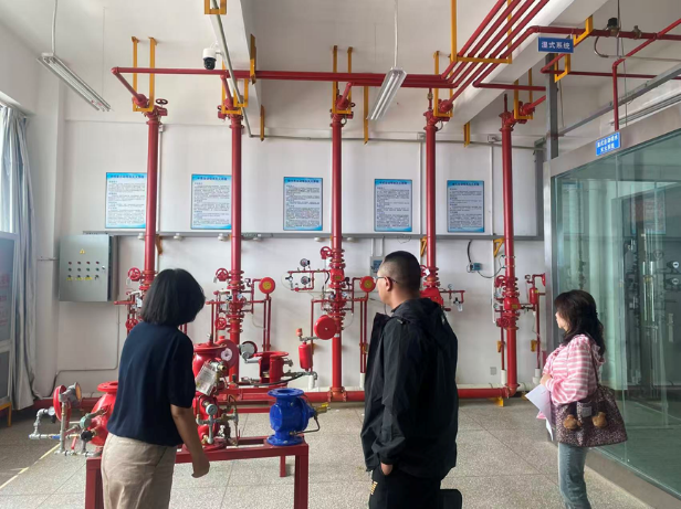 会后,在刘芳芳、白磊老师的陪同下,周杨俊秘书长、许燕老师一行参观了学院安全消防体验馆和消防专业实训室。周秘书长对学院高标准建设实训设施、注重实践教学的成效给予充分肯定。