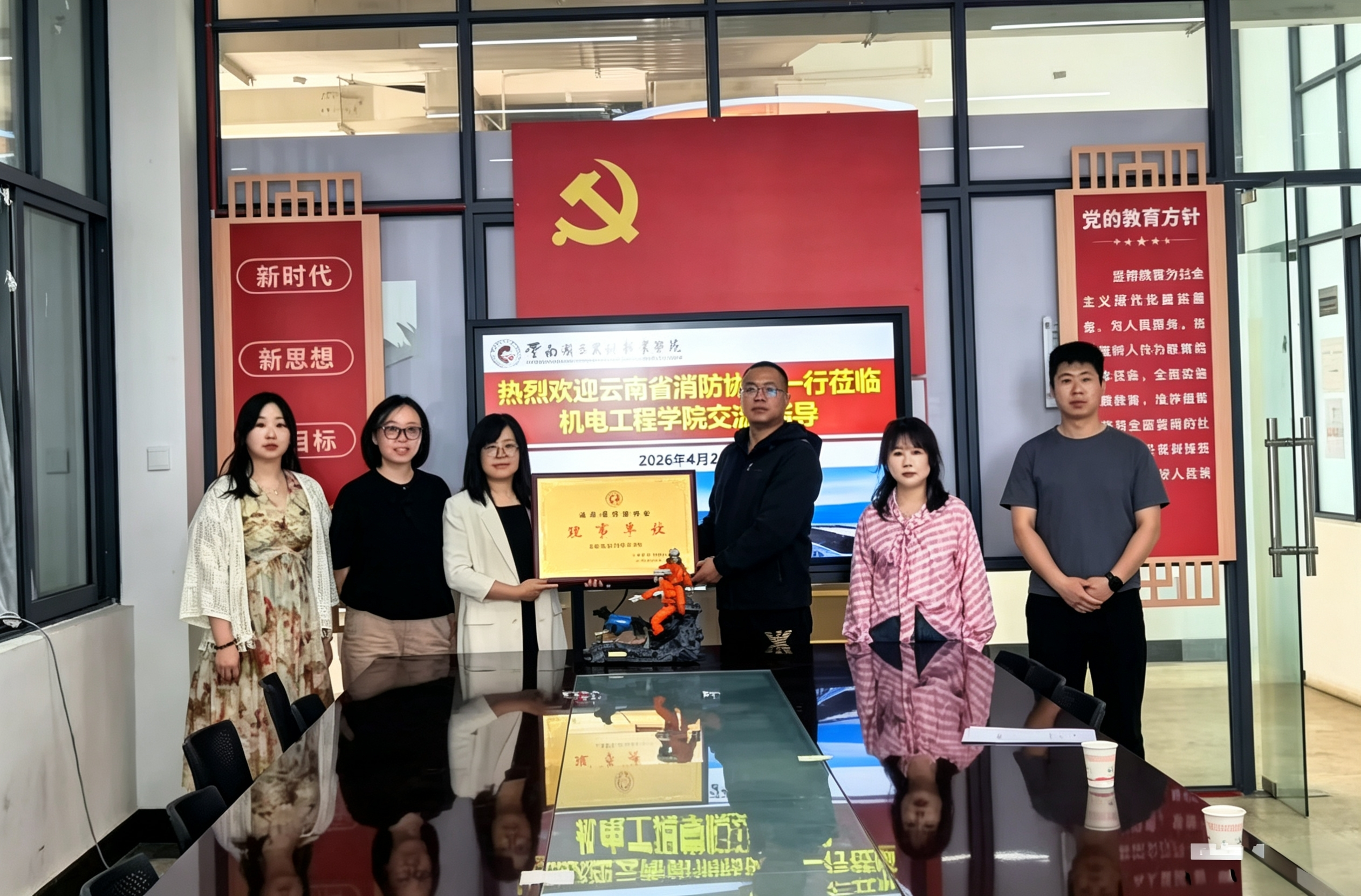 4月22日上午,云南省消防协会秘书长周杨俊、许燕老师一行莅临BBIN宝盈集团,举行“云南省消防协会理事单位”授牌仪式,并向学院赠送了消防救援模型。