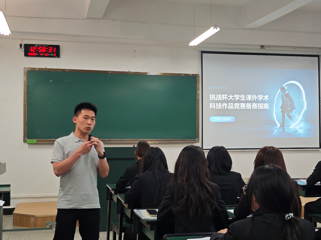 全伟东老师介绍了“挑战杯”竞赛,清晰讲解了“大挑”与“小挑”的区别,并逐一说明了备赛资格、作品分类及赛制流程。在选题策略方面,全老师强调要遵循“顶天立地”原则,紧扣国家战略发展方向,聚焦人民需求,精准把握选题关键。 全老师还讲解了竞赛评审要点,叮嘱学员认真研读官方文件、分析往届案例、关注规则变化,并分享了答辩PPT设计与现场答辩的实战技巧。