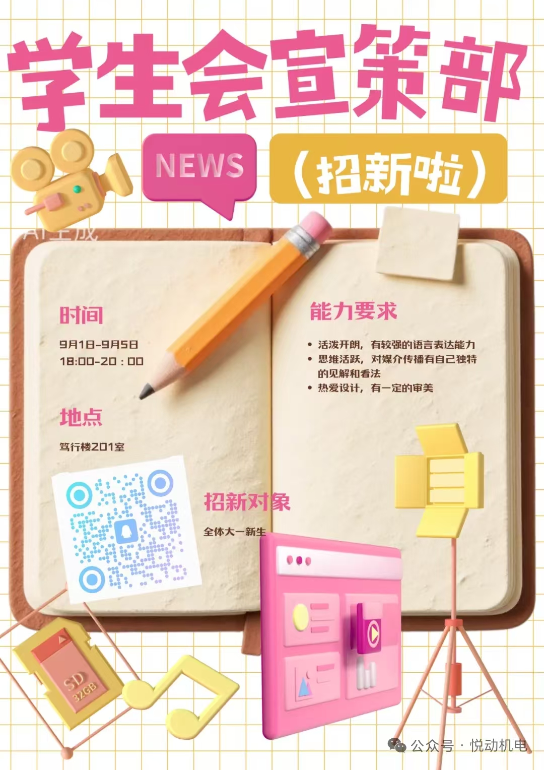 学生会宣传策划部招新啦!这里是学院活动的“视觉工厂”与“声音窗口”!我们负责设计各大活动创意海报、剪辑精彩宣传视频,定格活动高光瞬间;同时撰写鲜活新闻稿,运营学院公众号,让每一份精彩都被看见、被传播。无论你擅长设计、摄影,还是热爱文字、运营,只要有热情,就来加入我们,共赴这场创意与责任的美好相遇!