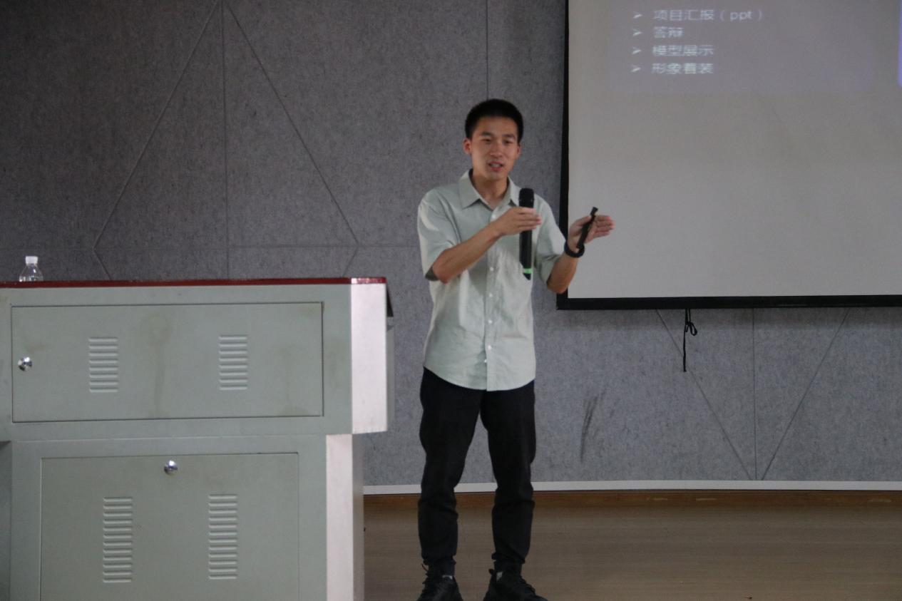 全伟东老师结合自身经历讲解:先阐明竞赛目的意义,强调立足自身发展,以赛提升组织、创新与创业能力;再指导项目选题,建议聚焦社会热点、依托现有成果延伸,结合赛事文件科学选定;还提及团队建设,指出需组建结构完善的团队,通过明确分工、发挥成员优势高效推进;并对参赛类别、市场分析及项目计划书、PPT制作等做了详细说明。