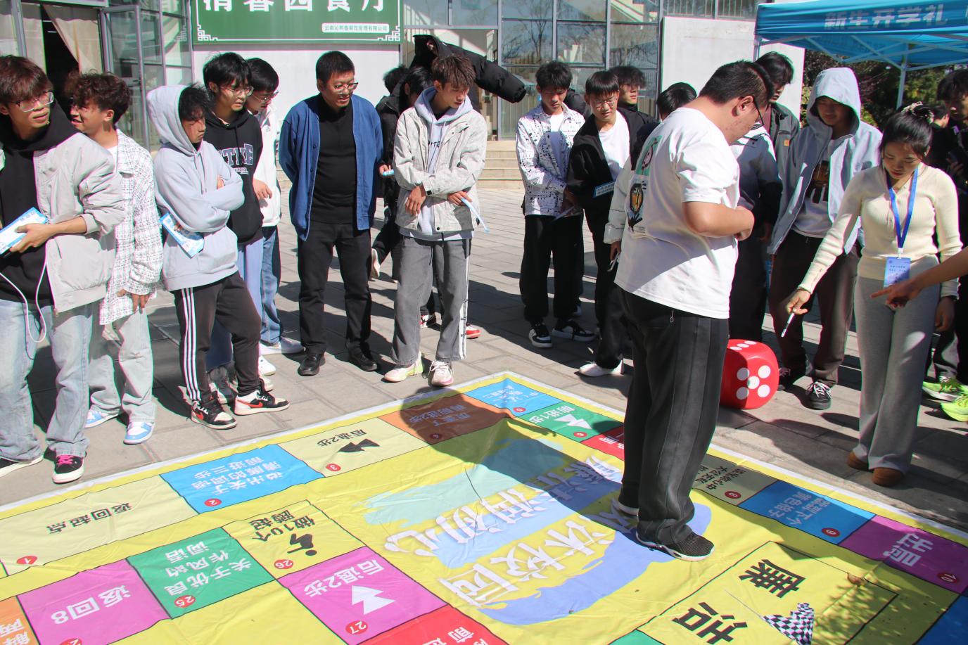 “辨清浊,行正道”:参与者依照地面手足印记谨慎前行,寓意在人生道路上须明辨是非、站稳立场、正直前行。