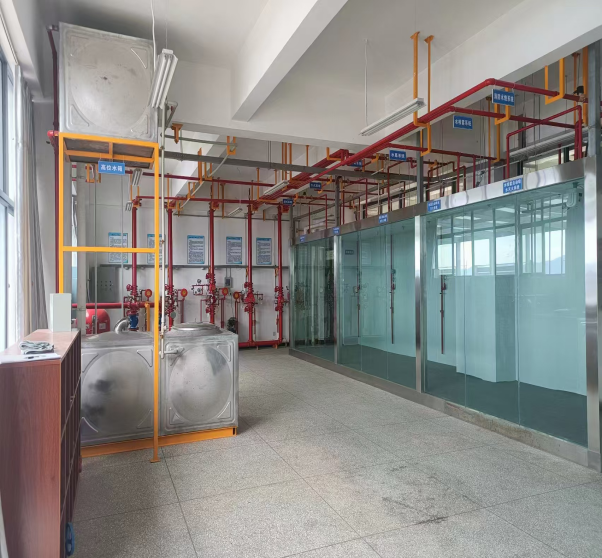 专业建有相对完善的消防实训室分别是:水系统实训室、消防自报与监控实训室、气体灭火及通排风实训室、消防国赛比赛训练室、安全检测与监测实训室、应急救援实训室;校内其他共享实训室有:制图编程仿真实训室、现代化智能制造数字孪生与虚拟仿真综合实训基地、机加工车间实训室、机械维修实训室、电子电工实训室,满足课程教学和专业实训教学的需要,为校内理实一体课程实施提供有力的支撑。